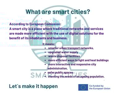 Legal description – Creative Commons licensing: The materials published on the Smart Cities project website are classified as Open Educational Resources' (OER) and can be freely (without permission of their creators): downloaded, used, reused, copied, adapted, and shared by users, with information about the source of their origin.